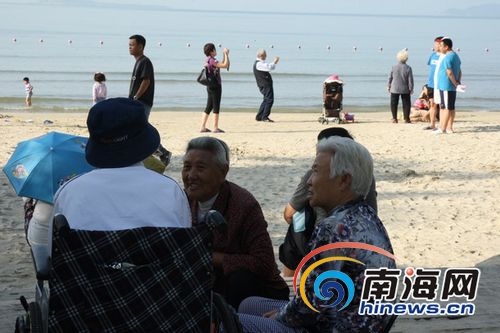 过冬老人在三亚海边聊天