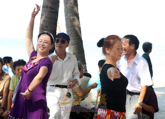 候鸟老人在三亚湾排练