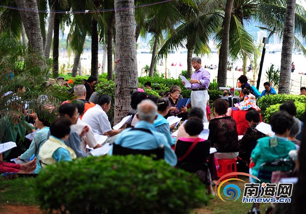 三亚湾候鸟老人合唱团排练