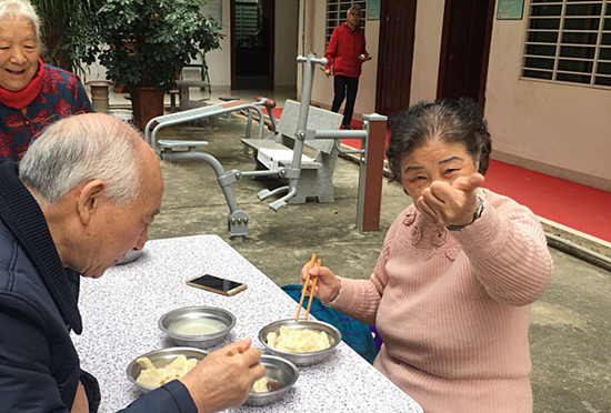 一年以来我们秉承信誉至上、服务第一的理念,迎送一批批前来海南度假养生的老人,我们迎来的是一张张喜庆的笑脸、送走的一路欢庆的笑声。他们就像我的亲人一样在这冬至的日子里通过微信短信息方式给我发来节日祝福的话语:“小赵您好、我们今天在基地吃饺子了,基地组织我们老人集体包饺子,饺子的味道可鲜美了,就像在自己家里一样,过来尝尝鲜吧!”“小赵,告诉您个好消息,我们基地今天晚上组织音乐晚会,我们现在正做准备活动呢,要不您来参与一下”。。。。。贴心的话语道出来我们养老人善言善语,也感受到了几个月以来我们作为基地服务人员的努力得到了汇报。我作为公司的一名从事老年度假颐养服务的员工感到无比的欣慰,真心祝愿各位大叔大妈、大哥大姐在海南度假的日子里住的好、吃的好、精神好、养出精气神。