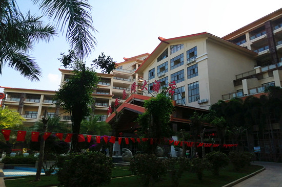 6公里行车10多分钟车程就到了我们的度假基地——五星东方西海岸福安候鸟旅居基地。时尚不失风情的一栋建筑物掩映在挺拔的椰子林下,显得静怡、豁达,欧式大堂、富丽堂皇彰显皇家气派,热情的前台接待细心地给我细说酒店的各项服务功能,宾至如归,身心温暖。