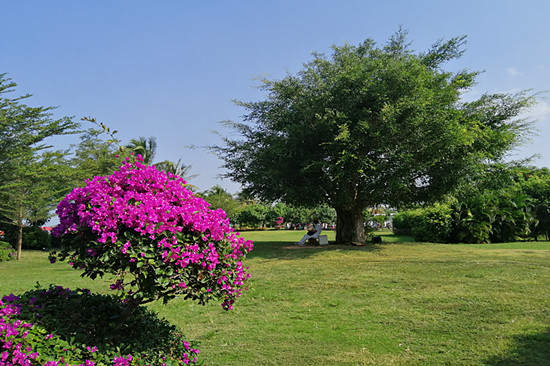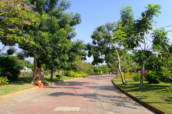 出门左拐100米就是知名海东方海滨公园,规划面积10万多平方米绝对是整个东方市重金打造唯一大型休闲型度假公园,这里典型热带植物居多:霸王棕、狐尾棕、鸡蛋花、扶桑花、滴水观音、薰衣草、三角梅……,花团锦绣,简直是花的海洋,树木葱郁、草坪像平铺的绿毯满眼争辉,配有大型儿童乐园,旋转木马、空中飞人、小火车、等各种孩子喜欢玩耍的游乐项目;成人区配有各种活动器材,别致的凉亭散落在树荫下,长条休闲椅为游客提供歇脚的去处。